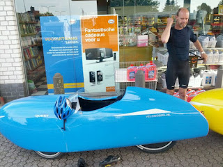Peter neemt hier toch nog maar even wat slaap, voordat hij weer verder fietst.